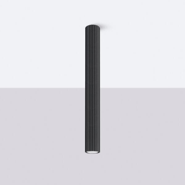 This maximum-length black spotlight delivers ultimate visual drama. The exceptionally extended matte black corrugated tube creates striking architectural impact, perfect for double-height loft spaces, above substantial islands, or in warehouse-style interiors where lighting needs to match ambitious proportions. This is industrial lighting at its most dramatic.