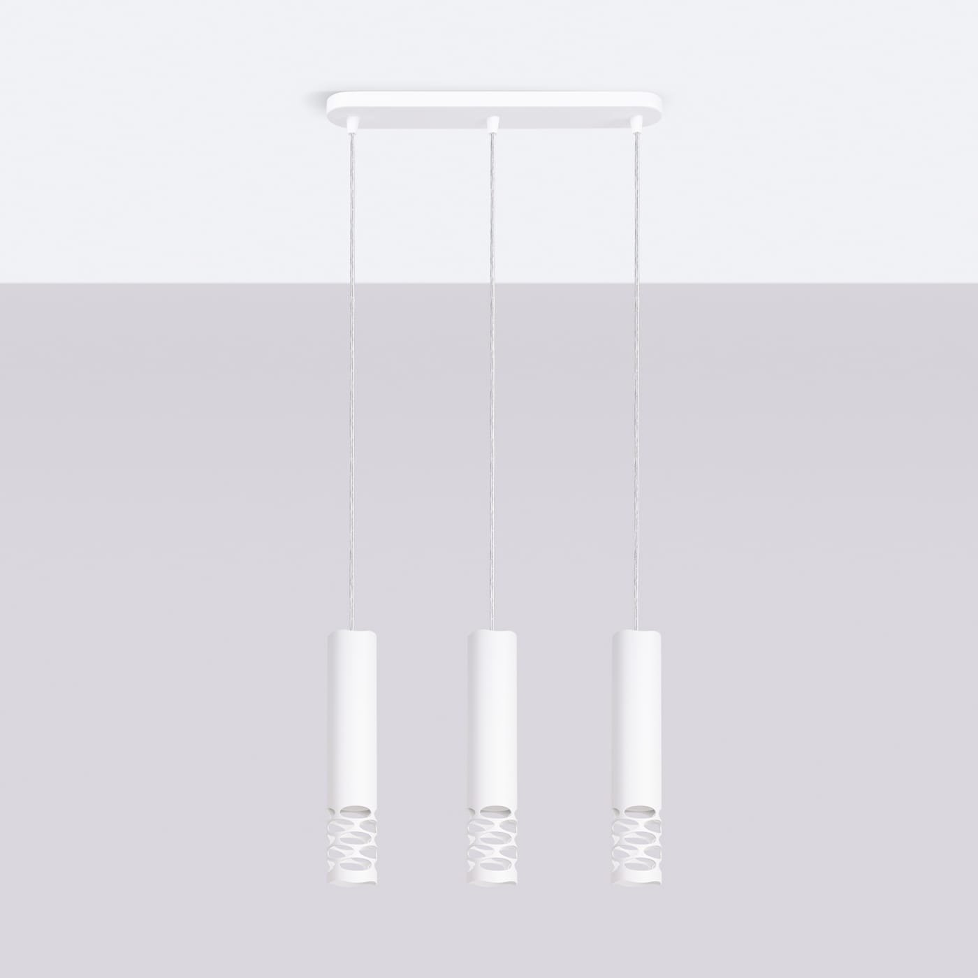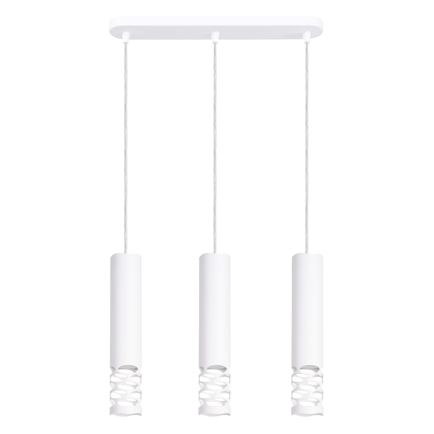 The wavy cut edge at the base of each shade works in rhythm along the line, creating a more interesting visual effect than three identical pendants usually manage. GU10 throughout.
