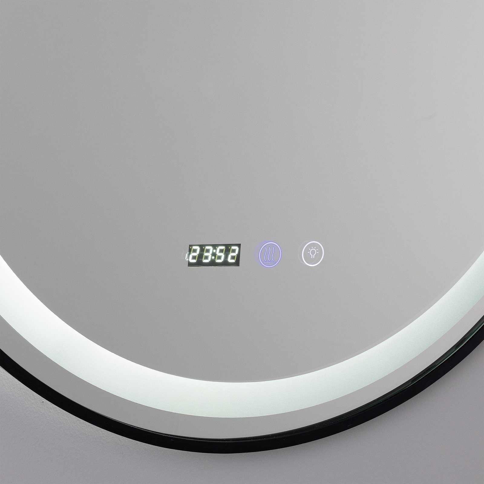 A discreet digital display shows current room temperature, adding a practical smart-home feature to your bathroom mirror. Perfect for maintaining comfortable bathroom temperatures, especially useful for families with young children or for monitoring bathroom climate throughout the year.
